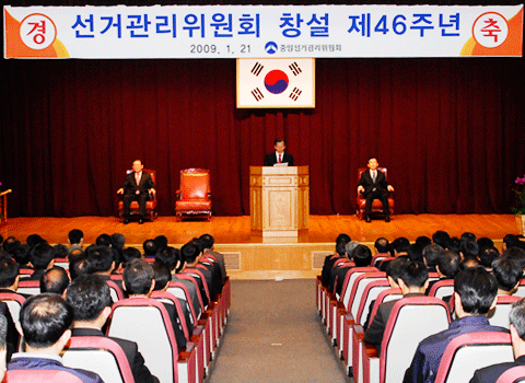 1월 21일 중앙선거관리위원회 대강당에서 위원회 창설 46주년 기념행사가 있었다. 중앙 및 선거연수원, 인터넷ㆍ선방위 임직원, 노동조합대표, 시도대표가 참석한 가운데 선관위의 발자취를 되돌아보고 앞으로 나아갈 방향을 제시하였다. 앞으로도, 창설 당시의 초심을 잃지 않고 국민의 기대에 따르기 위해 더욱 노력하는 선관위가 될 것을 다짐했다.