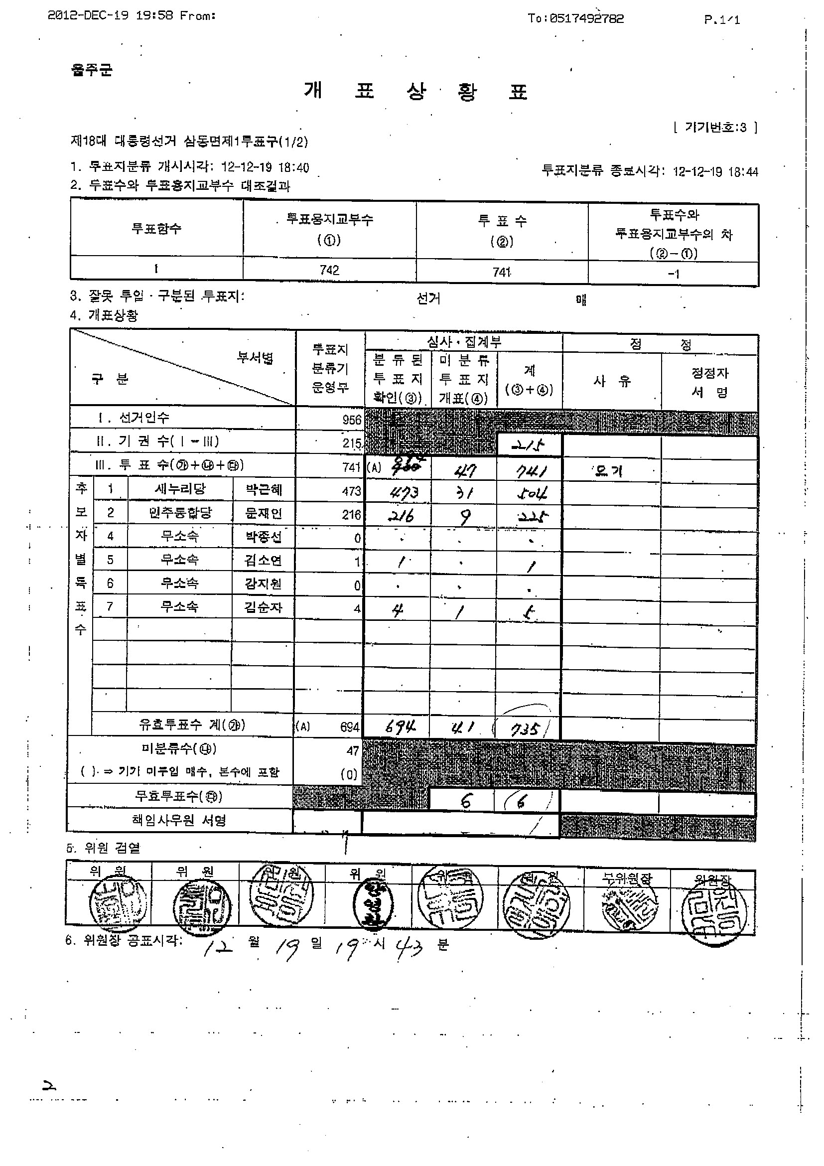 [울산시선관위 보도자료] 6. 4 지방선거 울주군선거구 개표 중 확인된 제18대 대선 투표지에 대한 위원회 입장
