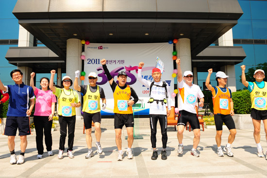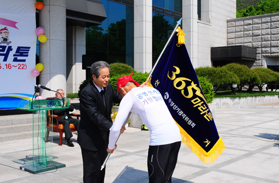 대표주자의 무사 완주를 격려하는 ‘365 울트라마라톤’ 출발 행사가 있었다.