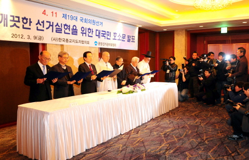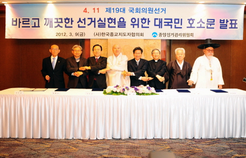 중앙선거관리위원회는 3월 9일 서울 롯데호텔에서 7대 종단 지도자들을 초청하여 이번 제19대 총선을