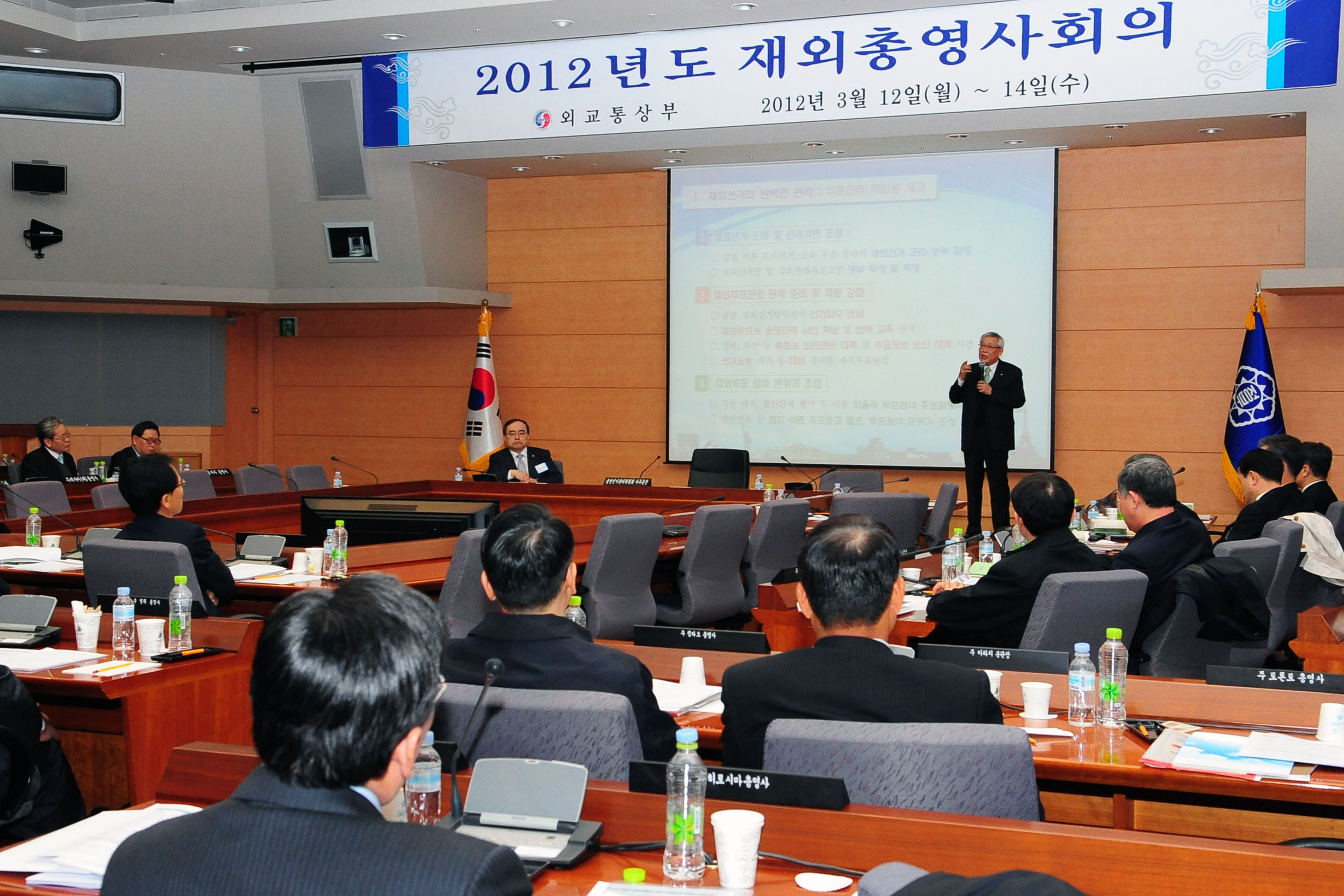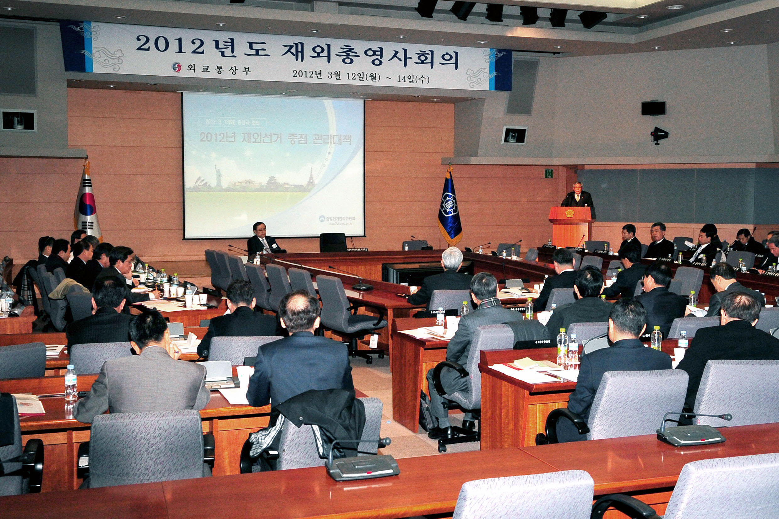 중앙선거관리위원회 이종우 사무총장은 3월 13일(화) 외교통상부 국제회의실에서 재외국민의 보호임무를 책임지는 전 세계 56명의 총영사와 분관장 및 출장소장을 대상으로 2012년 양대 선거 재외선거의 중점 관리대책에 대하여 강연하였다.