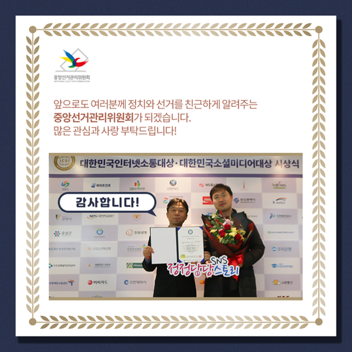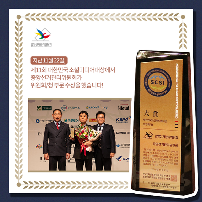 중앙선거관리위원회가 위원회/청 부문에서 수상을 했습니다!