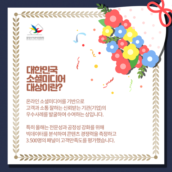 온라인 소셜미디어를 기반으로 고객과 소통 잘하는 신뢰받는 기관(기업)의 우수사례를 발굴하여 수여하는 상입니다.