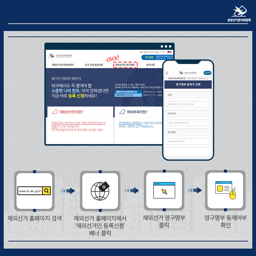 >재외선거 영구명부 클릭> 영구명부 등재여부 확인