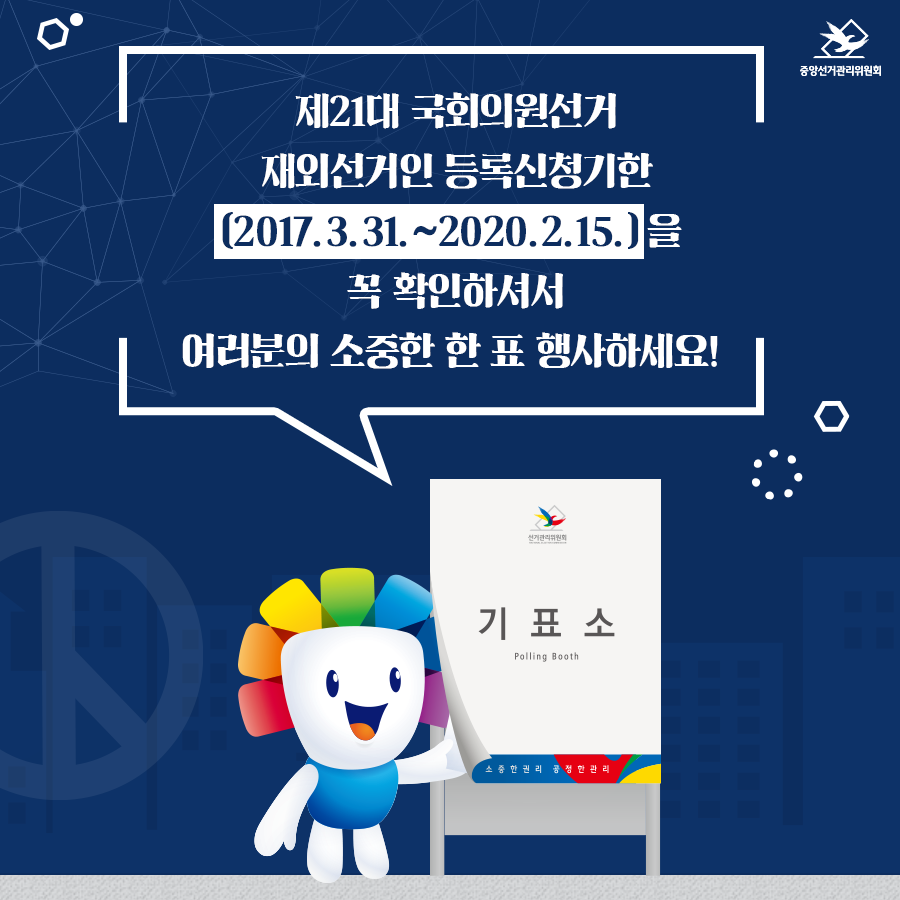 * 재외투표소 설치운영 : 2020.4.1. 4.6 중 6일 이내의 기간을 정하여 설치운영됨