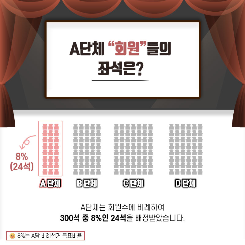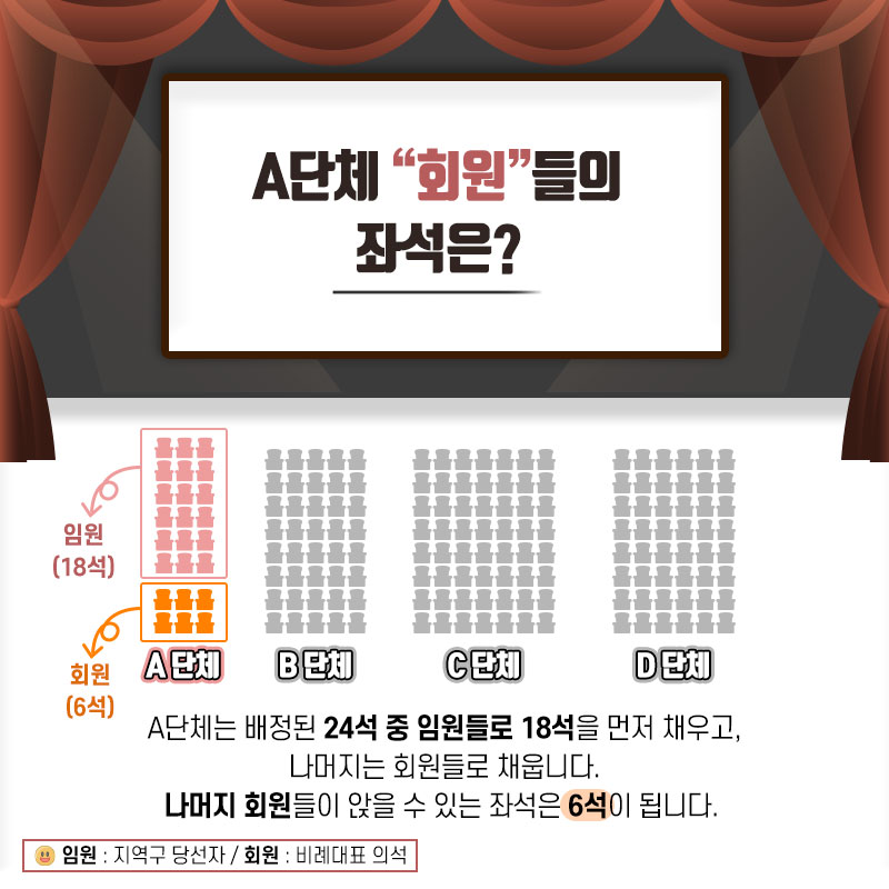 A단체 회원(6석)-연동형비례대표제 -> 회원(3석)-준연동형비례대표제