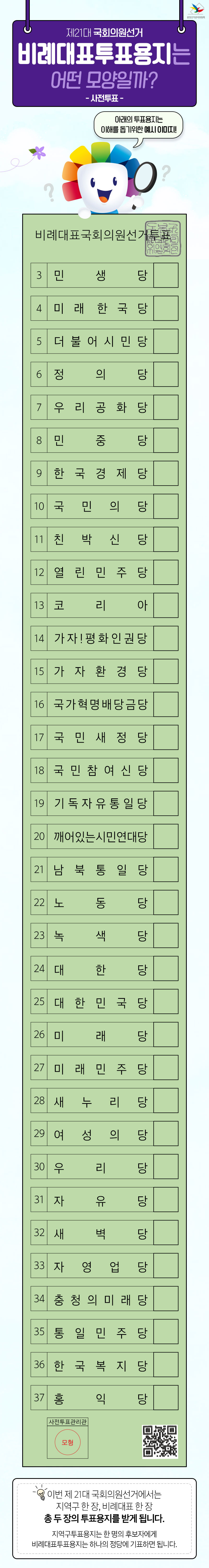 제21대 국회의원선거 비례대표투표용지는 어떤 모양일까?