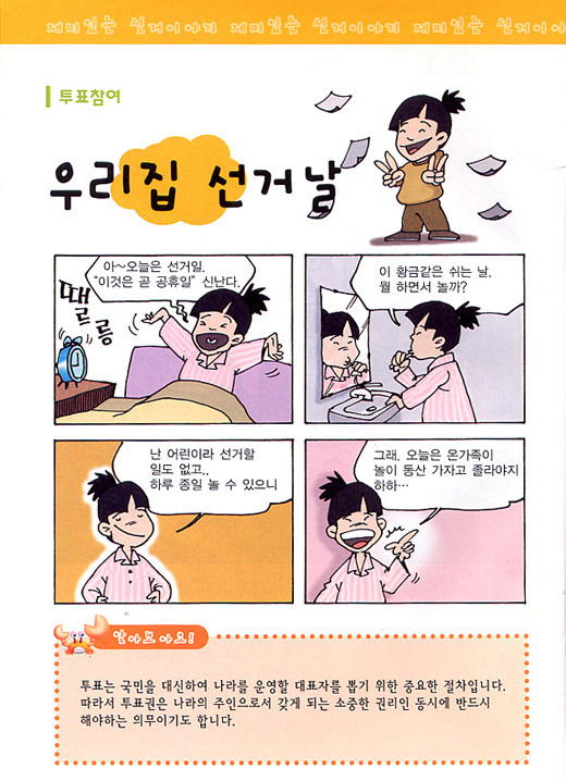 난 어린이라 선거할 일도 없고 하루종일 놀 수 있으니